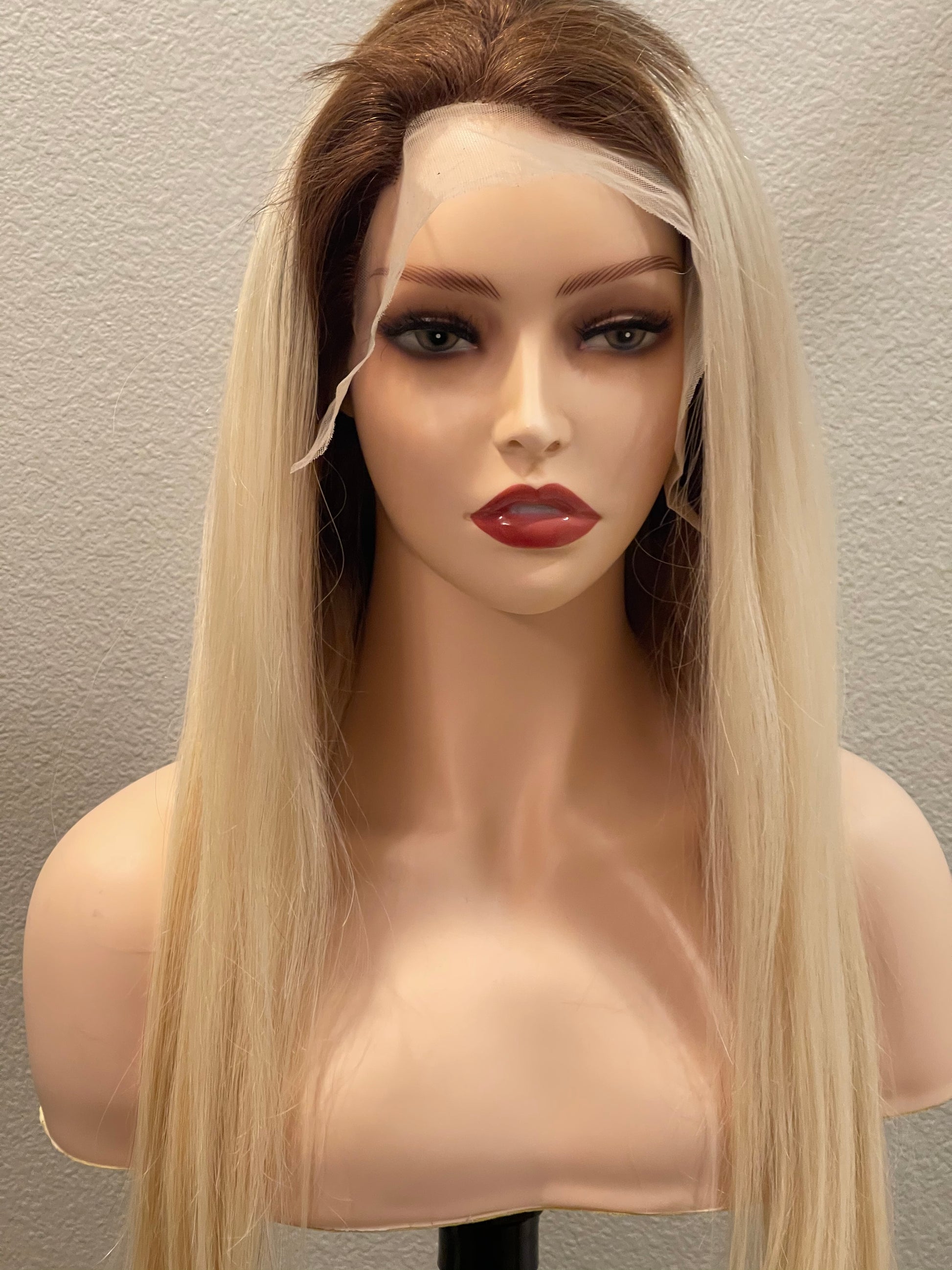 613 Virgin Brazilian Straight Transparent Lace Frontal Wig With Dark Roots